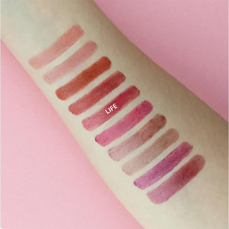 Ce rouge à lèvres se décline en teintes nude ou ultra-pigmentées, aux finis glossy, mat couvrant, mat nacré et transparent.